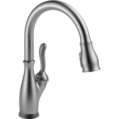 TOUCH ON. TOUCH OFF. Messy hands? Touch anywhere on the kitchen spout with your wrist or forearm to start and stop the flow of water or use the single lever handle manually. Check your water temperature from across the room using the TempSense LED indicator light that changes color to reflect water temperature MAGNETIC DOCKING: MagnaTite Docking uses a powerful magnet to snap your kitchen sprayer into place so it stays docked and doesn’t droop over time like other kitchen faucets LASTS 2X LONGER: Patented DIAMOND Seal Technology reduces leak points and lasts twice as long as the industry standard—ensuring leak-free operation for the life of the kitchen faucet (Industry standard is based on ASME A112.18.1 of 500,000 cycles) POWERFUL SPRAY: ShieldSpray Technology cuts through stubborn messes with a powerful stream of water inside a protective sphere that contains the splatter, so you can spend less time soaking and scrubbing with an average of 90% less splatter than a standard spray EASY TO CLEAN: Delta kitchen faucets with Touch-Clean spray holes allow you to quickly and easily wipe away calcium and lime build-up with a touch of a finger, while the SpotShield finish resists water spots and fingerprints LIFETIME LIMITED WARRANTY: You can install with confidence, knowing this kitchen faucet is backed by Delta Faucet's Lifetime Limited Warranty