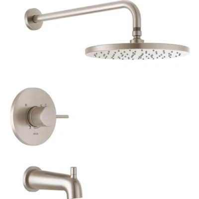 ROUGH SOLD SEPARATELY: Trim kit only, purchase Delta's MultiChoice Universal Shower Valve separately to complete the unit (recommended rough-in valve model R10000-UNBXHF) RAIN SHOWER HEAD: Achieve a spa-like experience with an overhead rainfall shower head without the need to run plumbing through the ceiling. The large rain shower head is both superior in design and durability PROTECTION FROM SUDDEN TEMPERATURE CHANGES: The Monitor Pressure-Balanced Valve Cartridge (included) ensures a consistent shower temperature by balancing the pressure of both hot and cold water, so no sudden temperature changes from toilet flushing or running appliances EASY TO CLEAN: Delta shower heads with Touch-Clean spray holes allow you to quickly and easily wipe away calcium and lime build-up with a touch of a finger, so no need to soak or use chemical cleaners LIFETIME LIMITED WARRANTY: You can install with confidence, knowing this Delta shower trim kits are backed by Delta Faucet's Lifetime Limited Warranty Temperature only controlled with handle Back-to-back installation capability Pull-up diverter tub spout Universal tub spout adapter allows for thread, sweat or slip-on installation, Manufacturer: Delta Faucet Company