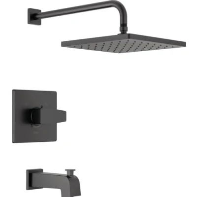 Delta Faucet Modern Raincan Square Single Function Tub and Shower Trim Kit Black, Set, Rainfall Head Kit, Matte Black T14468 BL PP (Valve Not Included)