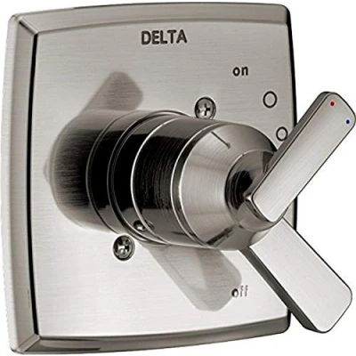Pressure balance valve keeps water temperature within a safe 3 Degree F Faucet and finish lifetime limited warranty Trim kit only, must purchase rough-in R10000-UNBX to complete the unit Meets standards set by Americans with Disabilities Act, Weight: 1.6 pounds, Manufacturer: Delta Faucet