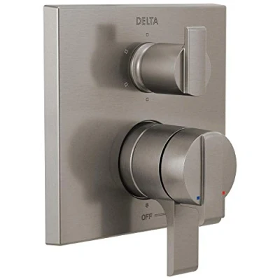 DELTA FAUCET T27967 SS, Stainless Ara Angular Modern Monitor 17 Series Valve Trim with 6 Setting Integrated Diverter