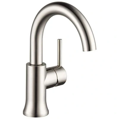 Delta Faucet Trinsic Single Hole Bathroom Brushed Nickel, Handle Faucet, Diamond Seal Technology, Drain Assembly, Stainless 559HA SS DST