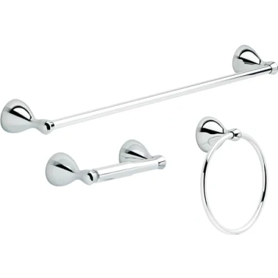 Wall mounted design for bathroom convenience and organization Chrome has rapidly become one of the most popular finishes across décor styles in the kitchen and bath thanks to its stunning gloss and innate versatility Paired with crisp lines and bright whites it creates a bold modern contrast but it works equally well with vintage styles and traditional spaces to convey a hint of nostalgia Has durable long-lasting finish to help prevent corrosion tarnish or discolor so you can enjoy a look you'll love for life Crafted from high quality zinc die cast for long term use Includes towel bar toilet paper holder and towel ring to complete your space, Manufacturer: Liberty Hardware
