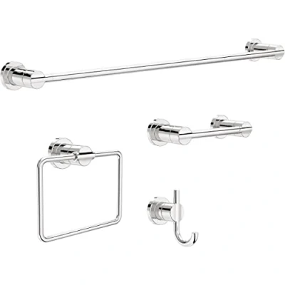 4-PIECE SET INCLUDES: Towel bar with a 6 in. extender piece, allowing you to extend towel bar from 18 in. to 24 in., pivoting toilet paper holder, square towel ring, and double towel hook FINISH: Chrome finish creates a bright, highly reflective, cool metallic look BUILT TO LAST: Long-lasting, durable finish resists corrosion, tarnish, and discoloration DURABLE: Crafted from multiple metals for strength and reliability DIMENSIONS: Towel bar measures 2.13" H x 22.65" L and 3.31" D DIMENSIONS: Toilet paper holder measures 2.13" H x 8.74" L x 3.31" D DIMENSIONS: Towel ring measures 6.15" H x 7.46" L x 2.56" D DIMENSIONS: Towel hook measures 3.86" L x 2.13" W x 3.93" D EASY INSTALL: All mounting hardware, template, and instructions provided WARRANTY: Enjoy the look you love for life with Delta’s Limited Lifetime Warranty