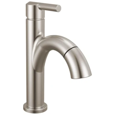 Delta Nicoli 1 Hole Pull Down Bathroom Faucet with Sprayer, Brushed Nickel Single Sink Out Sprayer for Vanity, Push Pop Drain, Stainless 15749LF SSPD