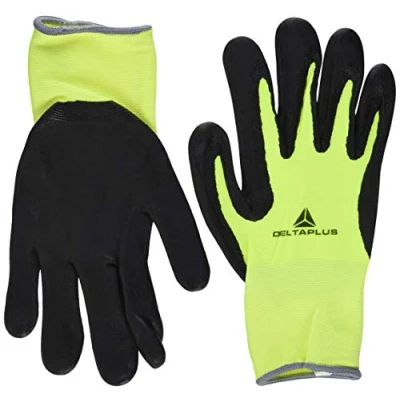 Delta Plus VV734JA11 Polyamide/Spandex Finely Knitted Gloves, Nitrile Foam/TPU Coating on Palm, Neon Yellow/Black, 11, 1 Pair