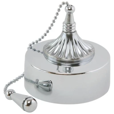 FPK4-CH-29 Deluxe model ceiling switch 6amp all chrome Attractive alternative to standard pull switch Finished all chrome Suitable for both one way and two way use 6amp Inductive load