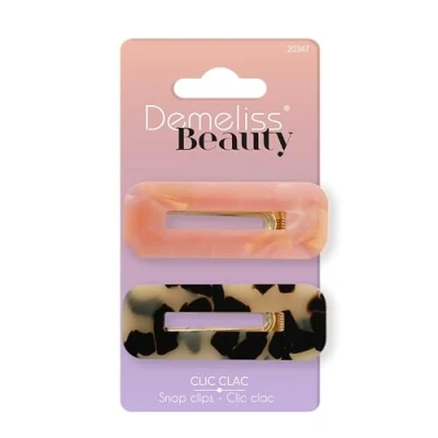 Assortment of 2 click clack clips Modern, colourful and chic design Random colour Perfect hold Demeliss Beauty is a trendy range of beauty and hair accessories