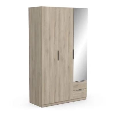 Design: The natural style of this wardrobe is highlighted by its oak colour. The details of its practical handles and design add consistency to the furniture. This cabinet will bring warmth to your interiors and will easily blend in LARGE SPACE: This large wardrobe consists of a large wardrobe space completed by 4 shelves as well as 2 drawers. The maximum load of the wardrobe rail of the dressing cabinet is 19 kg. The shelves of its niches support up to 8 kg each and its drawers 2 kg each MIRROR: This 3-door wardrobe has a one-sided mirror. In addition to adding depth to your room, its mirror gives a practical look. Save space by avoiding the clutter of a mirror as it is attached to your wardrobe cabinet! MADE IN FRANCE: To offer you the best quality at an affordable price and preserve employment, we are proud to offer you products 100% made in the North of France 2 YEAR WARRANTY AND PFEC CERTIFICATION: Demeyere is a committed company certified PEFC (Programme for the Recognition of Forest Certifications) since 2005. Buy your wardrobe with confidence with our 2 year warranty