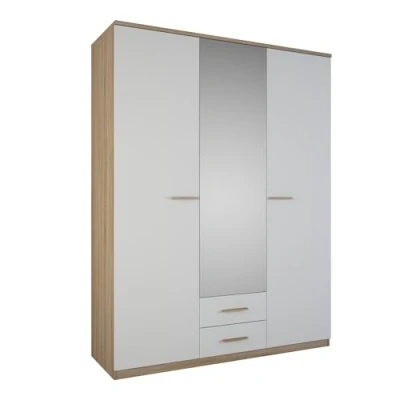 Uno stile naturale pulito sottolineato dalle sue sottili maniglie color legno Grande capacità di archiviazione che combina 4 scaffali, un armadio, 2 cassetti Grande altezza per un ingombro ridotto al suolo Specchio per una maggiore luminosità Prodotto in Francia