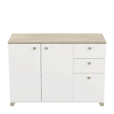 Demeyere Buffet 3 Portes et 2 Tiroirs Décor Chêne Kronberg Blanc Style Contemporain pour Salon, Salle à Manger L119,6 x P41,9 H85,1 cm