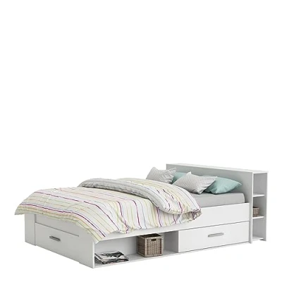 Demeyere Lit Avec Rangement 140x190 Style Contemporain 3 Tiroirs Coloris Blanc Mat 150,1 x 217,1 74,3 cm