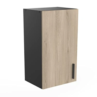 Practical and functional: equipped with a door, 3-level adjustable shelves and a drawer. This piece of furniture has been designed and designed for practicality and effectiveness of organisation. Industrial style: This "Origan" kitchen cabinet in an industrial style combines warm wood with touches of matte black in a simple and elegant design. Sturdy: This kitchen cabinet has a worktop thickness of 25 mm and is water resistant thanks to its 100% melamine coating. This piece of furniture is built to last a long time. 2 YEAR WARRANTY: Buy this kitchen or living room storage unit with confidence with our 2 year warranty. This kitchen trolley will fit perfectly into your home. Made in France: To offer you the best quality at an accessible price and preserve use, we are proud to offer you 100% made in the North of France. This product will be shipped in several packages. They may be delivered at different times