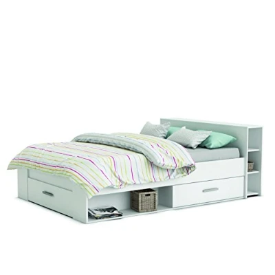 Bed frame for 140x190cm beddings Headboard with storage White colour self-assembly This product is packaged in two or more boxes. You may receive it on different days.