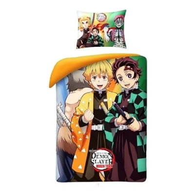 Demon Slayer Bedding Set, Reversible Duvet Cover 140 x 200 cm + Pillowcase, 100% Cotton, with Tanjirō Kamado and Zenitsu Agatsuma
