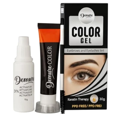 Demure Color Gel Eyebrow and Eyelash tint 30g, Lash Brow Dye Kit with Keratin Complex, delivering optimal strength, shine color, up to 20 applications (1.0 Black)