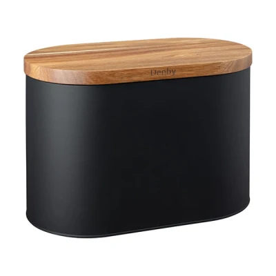Denby Black Bread Bin With Acacia Lid
