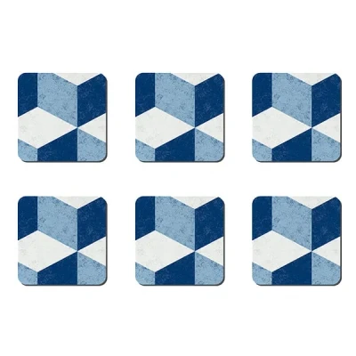 Denby Blue Geometric Square Set Of 6 Coasters
