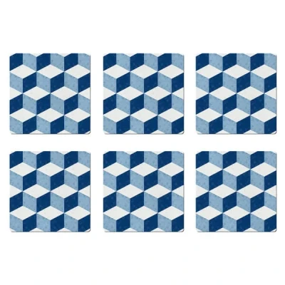 Denby Blue Geometric Square Set Of 6 Placemats