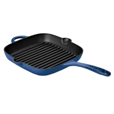 Enamelled inside and out, this Denby 25cm Cobalt Cast Iron Griddle Pan is ideal for cooking bacon, steaks, meats and fish.This 25cm Cobalt Cast Iron Griddle pan heats evenly and remains hotter for longer for efficient cooking with even heat distribution.Suitable for cooking with all types of hobs and heat sources including induction, this Cobalt Cast Iron Griddle Pan is oven safe up to 250°C.It is also dishwasher safe. Perfect as a gift or as an addition to an existing Halo collection.Griddle pan area 25cm x 25cm.Denby lifetime guarantee.
