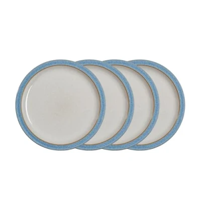 Denby Elements Blue Dinner Plates Set of 4 Dishwasher Microwave Safe Crockery 26.5cm Blue, White Ceramic Stoneware Tableware Chip & Crack Resistant Large