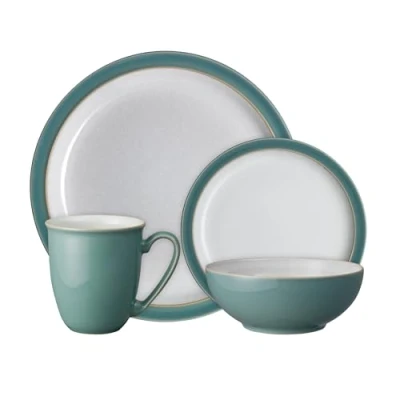 Denby Elements Fern Green Dinner Set For 1 4 Piece Ceramic Tableware Dishwasher Microwave Safe Crockery Single Place Setting x Plate, Small Cereal Bowl, Coffee Mug
