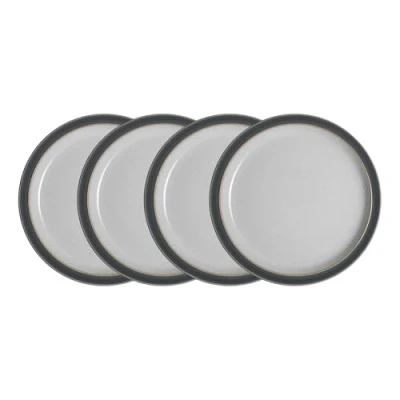 Denby Elements Fossil Grey Dinner Plates Set of 4 Dishwasher Microwave Safe Crockery 26.5cm Dark Grey, White Ceramic Stoneware Tableware Chip & Crack Resistant Large