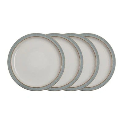Denby Elements Light Grey Dinner Plates Set of 4 Dishwasher Microwave Safe Crockery 26.5cm Pale Grey, White Ceramic Stoneware Tableware Chip & Crack Resistant Large