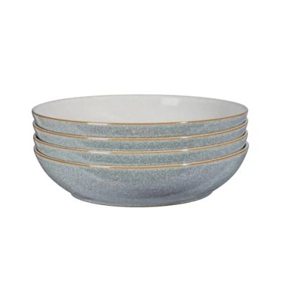 SET OF 4 PASTA BOWLS: This set contains 4 light grey pasta bowls with a white inside (22cm diameter, 1050ml capacity) - Pasta Bowls have become the new dinner plate as a versatile enough to eat a range of dishes - They are also great for cooking single servings of fruit crumble or cottage pie or as a serving bowl HAND-CRAFTED IN ENGLAND: Hand-Crafted in the Denby Pottery in England from locally-sourced, high quality clay - Each item is touched by at least 20 pairs of hands during the making process in our 200 year old factory in Derbyshire DURABLE & VERSATILE STONEWARE: This set has been expertly glazed to prevent chipping and enhance durability - Elements pieces can be used time and time again, from a casual evening takeaway to the dinner party of the year, to the first barbecue of the summer, making it the perfect choice for your home OVEN, MICROWAVE, DISHWASHER & FREEZER SAFE: Each item in this set can be safely used in the oven, dishwasher, freezer and microwave meaning you can cook your food in the same pot you serve it in, then save the leftovers and reheat it the next day, saving you time and money TIMELESS DESIGN: Elements crockery has a simple and beautiful design allowing the trends of the modern world to continue at full speed while Elements stays constant and sophisticated - This dinnerware set features a number of versatile pieces designed for modern living: perfectly sized bowls for soup, cereal and pasta, as well as rice and serving bowls, and beautiful and functional medium and dinner plates BUY WELL, BUY ONCE: Denby crafted products are made to last - Our products are sustainably made - we are proudly the first UK tableware manufacturer to be able to claim ‘zero to landfill’ for all our process waste - Such is the quality and durability of Denby that we are proud to offer a 10 year guarantee on our Made in England Denby stoneware ranges, giving you all the confidence you need to really love and enjoy your range