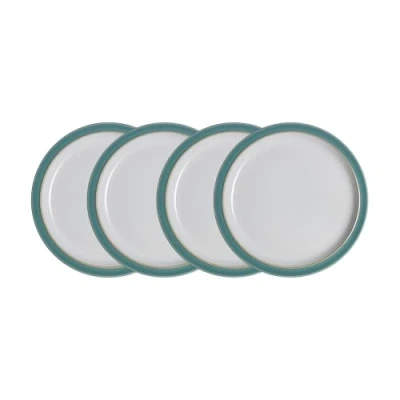 SET OF 4 MEDIUM PLATES: This set contains 4 green lunch plates with a white centre (22cm diameter) - These plates are ideal as a side, dessert or salad plate HAND-CRAFTED IN ENGLAND: Hand-Crafted in the Denby Pottery in England from locally-sourced, high quality clay - Each item is touched by at least 20 pairs of hands during the making process in our 200 year old factory in Derbyshire DURABLE & VERSATILE STONEWARE: This set has been expertly glazed to prevent chipping and enhance durability - Elements pieces can be used time and time again, from a casual evening takeaway to the dinner party of the year, to the first barbecue of the summer, making it the perfect choice for your home OVEN, MICROWAVE, DISHWASHER & FREEZER SAFE: Each item in this set can be safely used in the oven, dishwasher, freezer and microwave meaning you can cook your food in the same pot you serve it in, then save the leftovers and reheat it the next day, saving you time and money TIMELESS DESIGN: Elements crockery has a simple and beautiful design allowing the trends of the modern world to continue at full speed while Elements stays constant and sophisticated - This dinnerware set features a number of versatile pieces designed for modern living: perfectly sized bowls for soup, cereal and pasta, as well as rice and serving bowls, and beautiful and functional medium and dinner plates BUY WELL, BUY ONCE: Denby crafted products are made to last - Our products are sustainably made - we are proudly the first UK tableware manufacturer to be able to claim ‘zero to landfill’ for all our process waste - Such is the quality and durability of Denby that we are proud to offer a 10 year guarantee on our Made in England Denby stoneware ranges, giving you all the confidence you need to really love and enjoy your range