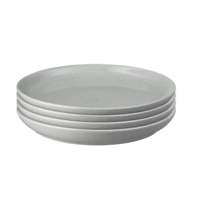 Denby Elements Medium Light Grey Coupe Plates Set of 4 Dishwasher Microwave Safe Crockery 26cm Pale Grey, White Ceramic Stoneware Tableware Chip & Crack Resistant Lunch