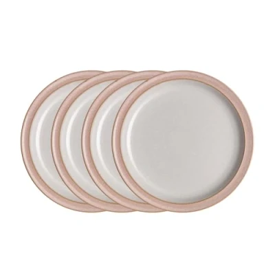 Denby Elements Sorbet Pink Dinner Plates Set of 4 Dishwasher Microwave Safe Crockery 26.5cm Pale Pink, White Ceramic Stoneware Tableware Chip & Crack Resistant Large