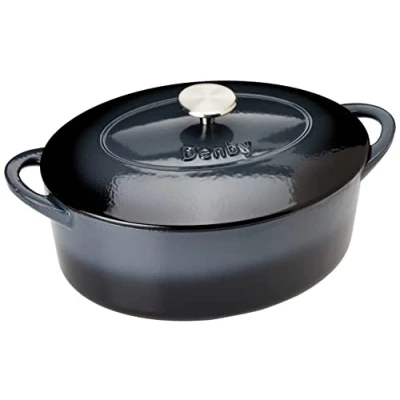 Enamelled inside and out this, Denby 28cm Oval Cast Iron Casserole is ideal for making stews, soups, casseroles and cooking vegetables.This 28cm Oval Cast Iron Casserole heats evenly and remains hotter for longer for efficient cooking with even heat distribution.Suitable for cooking with all types of hobs and heat sources including induction, this Cast Iron Casserole is oven safe up to 250°C.It is also fridge, freezer and dishwasher safe.Perfect as a gift or as an addition to an existing Halo collection.Diameter: 28cm x 21cm.Denby lifetime guarantee.