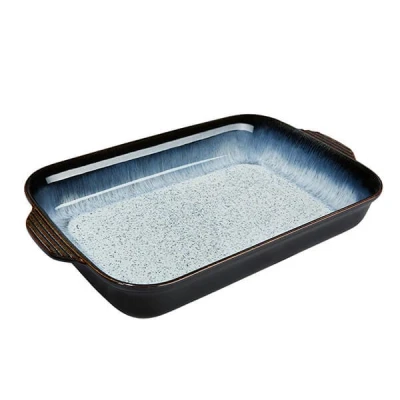 The Denby Halo Large Rectangular Oven Dish is great for cooking up Lasagnes or Pies to create those perfect family moments with.Featuring a resilient glaze, this hardwearing piece of stoneware can be used in a multitude of different varieties.Dimensions: L39.5cm x W24cm x D6.5cm.>Part of the Denby Halo collection.