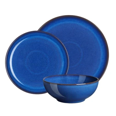 12 PIECE DINING SET FOR 4: This 12 piece coupe dinner set for 4 includes 4 dinner plates (26cm diameter), 4 medium plates (21cm diameter) and 4 cereal bowls (17cm diameter, 820ml capacity) - This set can be used for breakfast, lunch and dinner HAND-CRAFTED IN ENGLAND: Hand-Crafted in the Denby Pottery in England from locally-sourced, high quality clay - Each item is touched by at least 20 pairs of hands during the making process in our 200 year old factory in Derbyshire DURABLE & VERSATILE STONEWARE: This set has been expertly glazed to prevent chipping and enhance durability - Our ranges are versatile and multi-functional - perfect for everyday use or for special occasions - so a smaller number of pieces are needed OVEN, MICROWAVE, DISHWASHER & FREEZER SAFE: Each item can be safely used in the oven, dishwasher, freezer and microwave meaning you can cook your food in the pot you serve it in, save the leftovers and reheat it the next day, saving you time and money VIBRANT GLAZE: The Denby Imperial Blue range was introduced in 1989 and displays a vibrant cobalt glaze with hints of pure white - This stoneware range is timeless BUY WELL, BUY ONCE: Denby products are sustainably made - we are proudly the first UK tableware manufacturer to be able to claim ‘zero to landfill’ for all our process waste - We also offer a 10 year guarantee on our Made in England stoneware ranges
