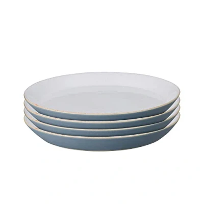 SET OF 4 MEDIUM PLATES: This set contains 4 blue medium coupe ceramic plates (21.5cm diameter) - These stoneware plates are ideal for holding salads, desserts and smaller portion sizes HAND-CRAFTED IN ENGLAND: Hand-Crafted in the Denby Pottery in England from locally-sourced, high quality clay - Each item is touched by at least 20 pairs of hands during the making process in our 200 year old factory in Derbyshire DURABLE & VERSATILE STONEWARE: This set has been expertly glazed to prevent chipping and enhance durability meaning you can use and enjoy your Denby stoneware for all ocassions OVEN, MICROWAVE, DISHWASHER & FREEZER SAFE: Each item in this set can be safely used in the oven, dishwasher, freezer and microwave meaning you can cook your food in the same pot you serve it in, then save the leftovers and reheat it the next day, saving you time and money ARTISAN DESIGN: The gentle muted colour palette for this collection has been created around the combinations of glazes and patterns - This range is perfect to mix and match together yet stunning enough to stand alone