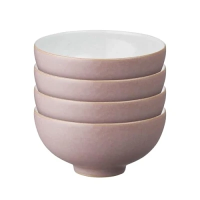 SET OF 4 RICE BOWLS: This set contains 4 pink ceramic rice bowls (13cm diameter) - These stoneware rice bowls are ideal for rice, curry, dessert or even soup handcrafted IN ENGLAND: handcrafted in the Denby Pottery in England from locally-sourced, high quality clay. Each item is touched by at least 20 pairs of hands during the making process in our 200 year old factory in Derbyshire. DURABLE & VERSATILE STONEWARE: This set has been expertly glazed to prevent chipping and enhance durability meaning you can use and enjoy your Denby stoneware for all occasions OVEN, MICROWAVE, DISHWASHER & FREEZER SAFE: Each item in this set can be safely used in the oven, dishwasher, freezer and microwave meaning you can cook your food in the same pot you serve it in, then save the leftovers and reheat it the next day, saving you time and money ARTISAN DESIGN: The gentle muted color palette for this collection has been created around the combinations of glazes and patterns. This range is perfect to mix and match together yet stunning enough to stand alone.
