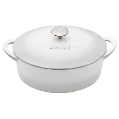 Enamelled inside and out, this Denby Natural Canvas 28cm Oval Cast Iron Casserole is ideal for making stews, soups, casseroles and cooking vegetables.This 28cm Cast Iron Casserole heats evenly and remains hotter for longer for efficient cooking with even heat distribution.Suitable for cooking with all types of hobs and heat sources including induction, this Cast Iron Casserole is oven safe up to 250°C.It is also fridge, freezer and dishwasher safe.Perfect as a gift or as an addition to an existing Natural Canvas collection.Diameter: 28cm x 21cm.Denby lifetime guarantee.