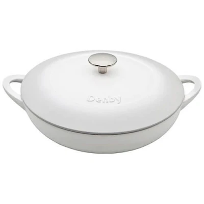 Enamelled inside and out, this Denby Natural Canvas 30cm Shallow Cast Iron Casserole is ideal for making stews, soups, casseroles and cooking vegetables.This 30cm Cast Iron Casserole heats evenly and remains hotter for longer for efficient cooking with even heat distribution.Suitable for cooking with all types of hobs and heat sources including induction, this Cast Iron Casserole is oven safe up to 250°C.It is also fridge, freezer and dishwasher safe.Perfect as a gift or as an addition to an existing Natural Canvas collection.Diameter: 30cm.Denby lifetime guarantee.