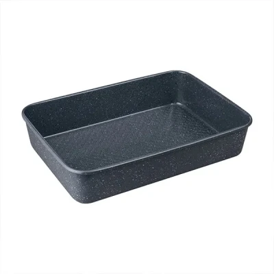 This Denby Quantanium Finish Large Roasting Tray, is perfect for rosting chicken, lamb, pork, beaf and various vegetables.Complete with a Quan Tanium non-stick coating that allows for better heat conduction.An essential tool in the kitchen whilst peparing a roast dinner.Oven safe up to 250°C.The Denby Quantanium Finish range is dishwasher safe.