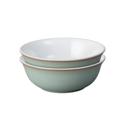 Denby Regency Green Cereal Bowls Set of 2 Dishwasher Microwave Safe Crockery 650ml 16.5cm Green, White Ceramic Stoneware Tableware Chip & Crack Resistant Soup