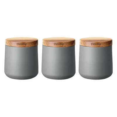 Denby Set Of 3 Grey Storage Canisters