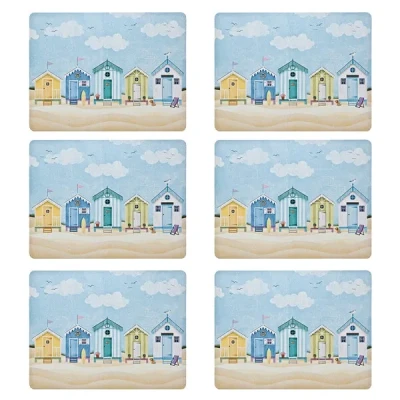 Add a hint of sunshine and the coast to your table setting, with this Denby Set Of 6 Seaside Placemats.Each bright beach themed coaster makes a stylish addition to any dining table.Dimensions: W23cm x L30.5cm x D4mm.Heat resistant up to 60°C, these coasters can be wiped clean with a cloth.Co-ordinating placemats available separately.
