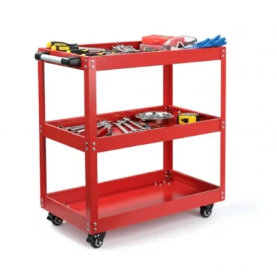 Denny 3 Tier Tool Trolley on Wheels Lockable Rolling Storage Cart with Handle, Heavy Duty Garage & Workshop Organizer for DIY and Service Tools (RED)