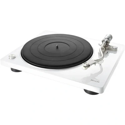Denon DP 400 Record Player for Vinyl Records, Turntable, 33/45/78 RPM, Built in Phono Equalizer, Including Removable Dust Cover & MM Cartridge, MC Compatible White