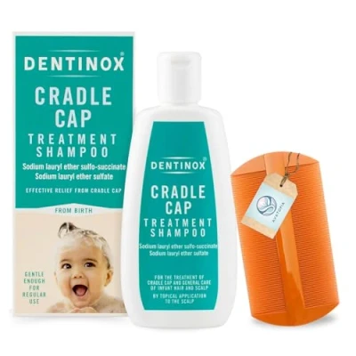 Effective Cradle Cap Relief – The gentle Dentinx Cradle Cap Shampoo provides trusted cradle cap treatment for baby, helping to clear flaky scalp patches while leaving hair soft and nourished. Baby Bathing Products Essential – A must-have in your bathing products collection, this soothing formula doubles as a safe toddler shampoo suitable from birth. Gentle & Versatile Hair Care – Works as both a kids shampoo and mild dandruff shampoo for kids, making bath time easier while promoting a healthy scalp. Includes Nit Comb for Extra Care – The bundle comes with a durable nit comb that complements your shampoo cradle cap routine and can also support use with head lice shampoo for children. Safe & Gentle for All Ages – This versatile kit supports everyday care as a trusted kids shampoo and mild toddler shampoo and conditioner option, suitable even for newborns.