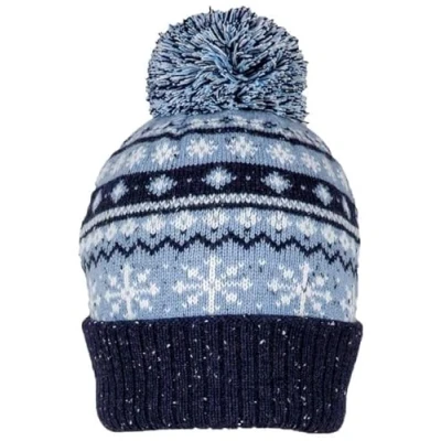 Dents Womens Jacquard Fair Isle Knitted Bobble Hat Cornflower Blue
