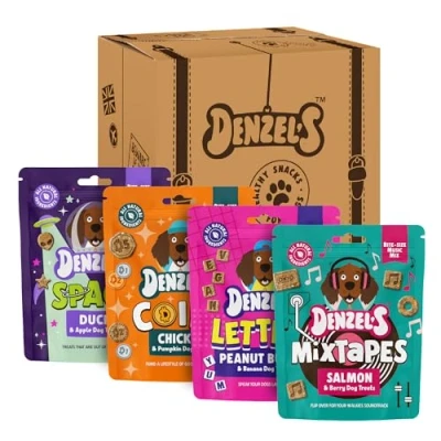 Level up your treat game with Denzel’s Bite-Size Treats for fun & games. Featuring 4 different packs, recipes and a variety of different shapes and sizes including Denzel’s Mixtapes, Letters, Coins and Space Mix. Our all-natural, grain-free Bites are gently baked in the UK and come in 100% plastic-free packaging.