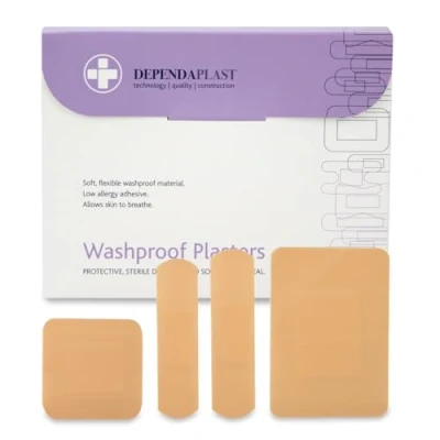 Dependaplast Washproof Plasters Assorted, Flexible PU Plastic Film, Secure Adhesive, Breathable, Waterproof Box of 100