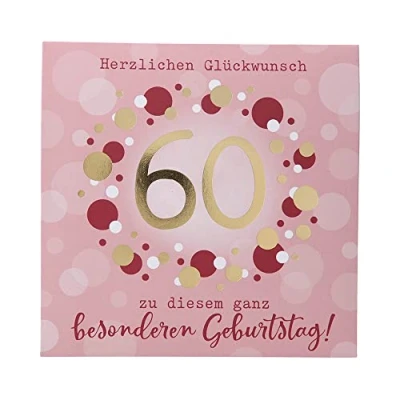 Intricately designed 60th Birthday Music Card Humorous Happy Birthday Greeting Card When you open the square folding card, the song "Happy Birthday" sounds An original saying on the outside and inside with an elegant pop-up, music and light effect and space for your own personal message The high-quality card is made of sturdy paper and comes with matching envelope (approx. 17.0 x 17.5 cm)